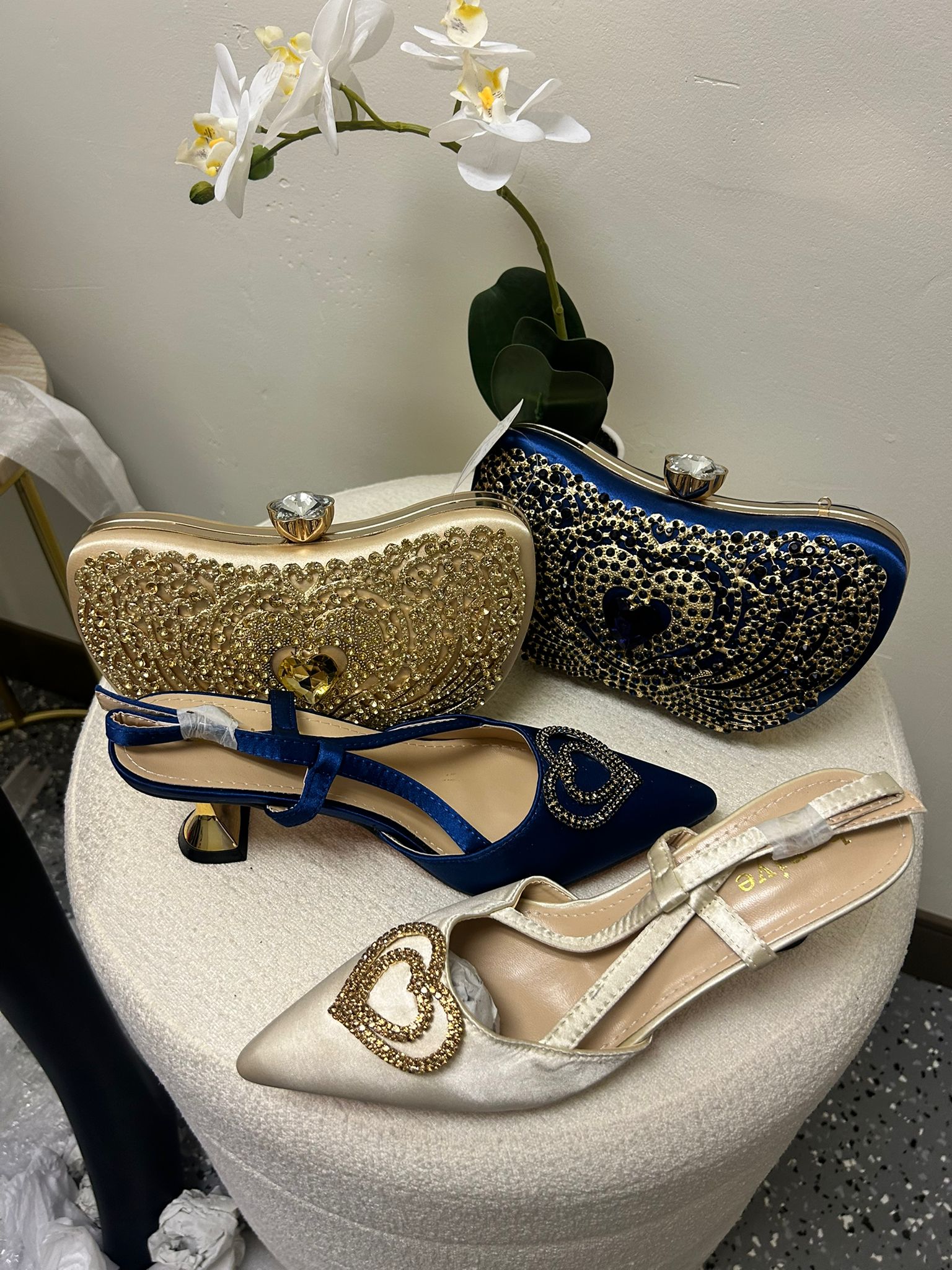 Elevate your ensemble with this Stylish Designer Clutch Bag paired perfectly with matching mule shoes. Both feature intricate emblem detailing that adds a refined touch of sophistication and cohesive style, making them ideal for special occasions or upscale events. Crafted to complement each other seamlessly, this set ensures a polished and elegant look from head to toe.
